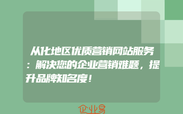 - 从化地区优质营销网站服务:解决您的企业营销难题,提升品牌知名度!在当今竞争激烈的市场环境中,企业的营销策略至关重要。为了在众多竞争对手中脱颖而出,您需要一个有效的营销方案来提高品牌知名度并吸引潜在客户。从化地区的优质营销网站服务正是您所需要