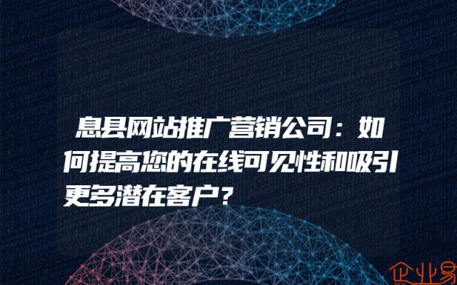 - 息县网站推广营销公司:如何提高您的在线可见性和吸引更多潜在客户?