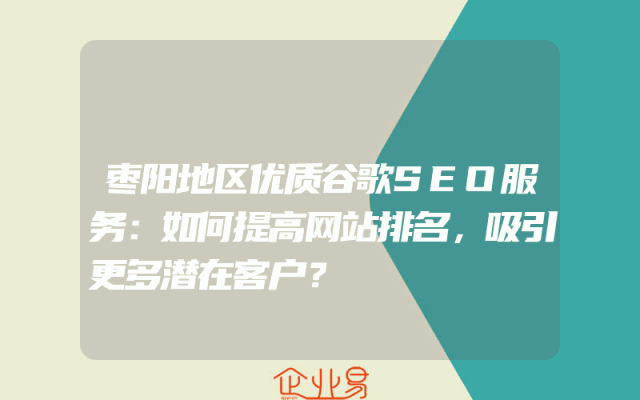 - 枣阳地区优质谷歌SEO服务:如何提高网站排名,吸引更多潜在客户?