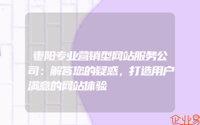 - 枣阳专业营销型网站服务公司:解答您的疑惑,打造用户满意的网站体验