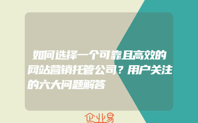 - 如何选择一个可靠且高效的网站营销托管公司?用户关注的六大问题解答