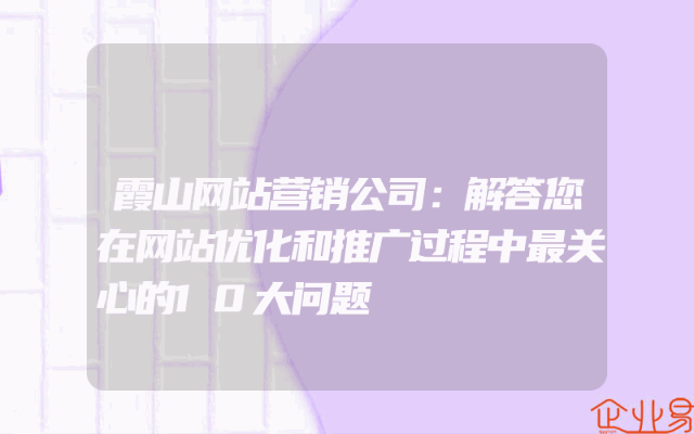 - 霞山网站营销公司:解答您在网站优化和推广过程中最关心的10大问题
