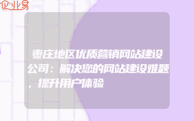 - 枣庄地区优质营销网站建设公司:解决您的网站建设难题,提升用户体验