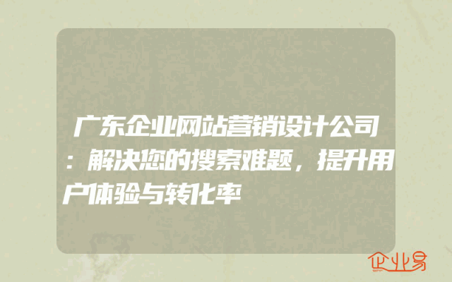 - 广东企业网站营销设计公司:解决您的搜索难题,提升用户体验与转化率