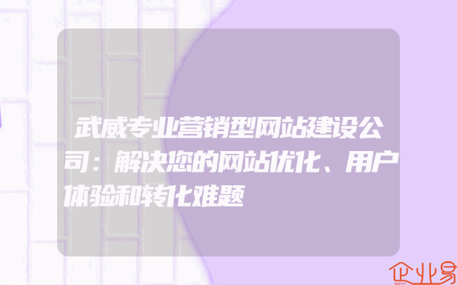 - 武威专业营销型网站建设公司:解决您的网站优化、用户体验和转化难题