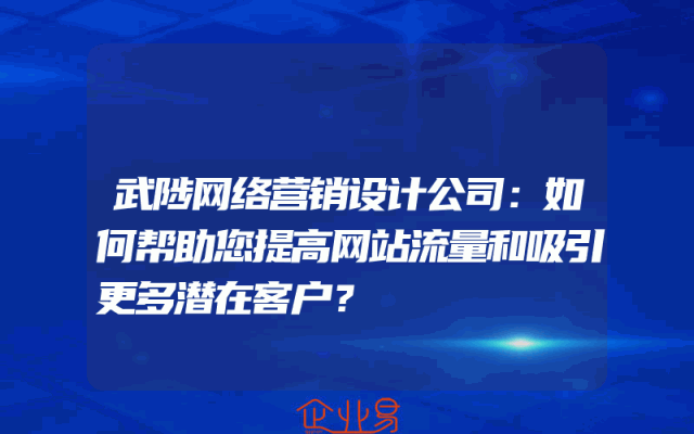 - 武陟网络营销设计公司:如何帮助您提高网站流量和吸引更多潜在客户?