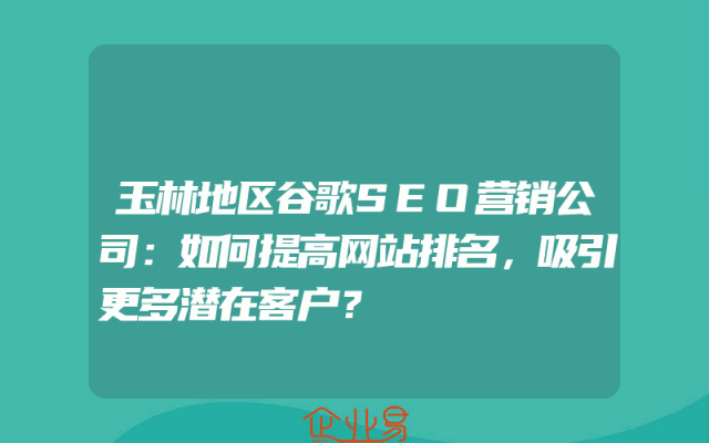 - 玉林地区谷歌SEO营销公司:如何提高网站排名,吸引更多潜在客户?