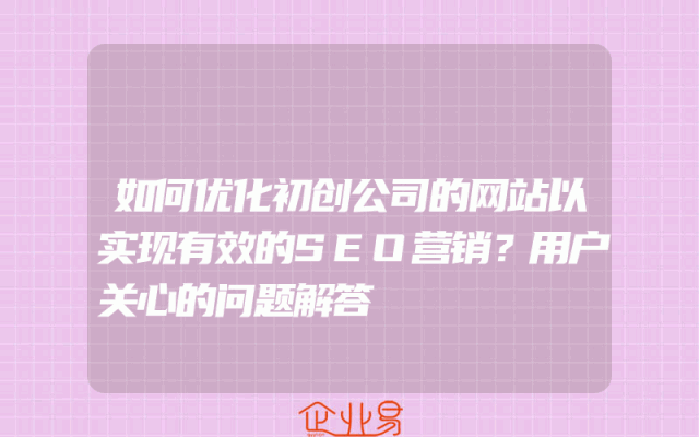 - 如何优化初创公司的网站以实现有效的SEO营销?用户关心的问题解答