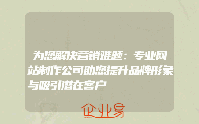 - 为您解决营销难题:专业网站制作公司助您提升品牌形象与吸引潜在客户