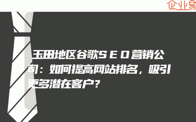 - 玉田地区谷歌SEO营销公司:如何提高网站排名,吸引更多潜在客户?