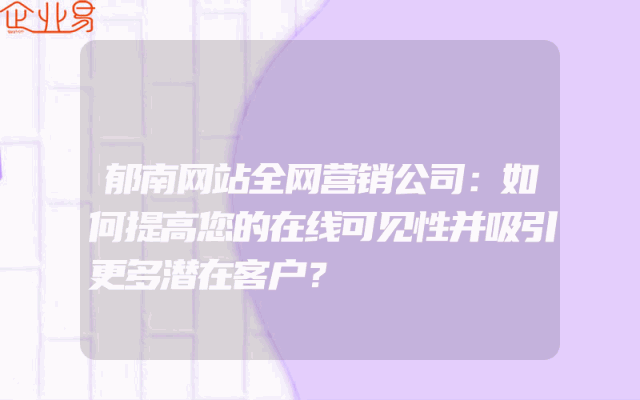- 郁南网站全网营销公司:如何提高您的在线可见性并吸引更多潜在客户?