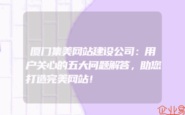 - 厦门集美网站建设公司:用户关心的五大问题解答,助您打造完美网站!