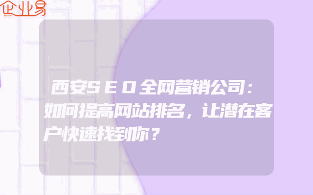 - 西安SEO全网营销公司:如何提高网站排名,让潜在客户快速找到你?
