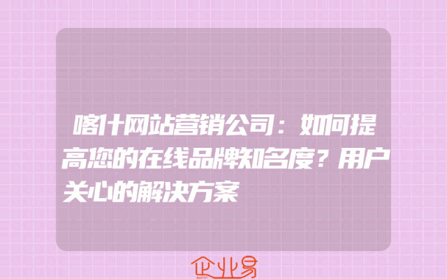 - 喀什网站营销公司:如何提高您的在线品牌知名度?用户关心的解决方案