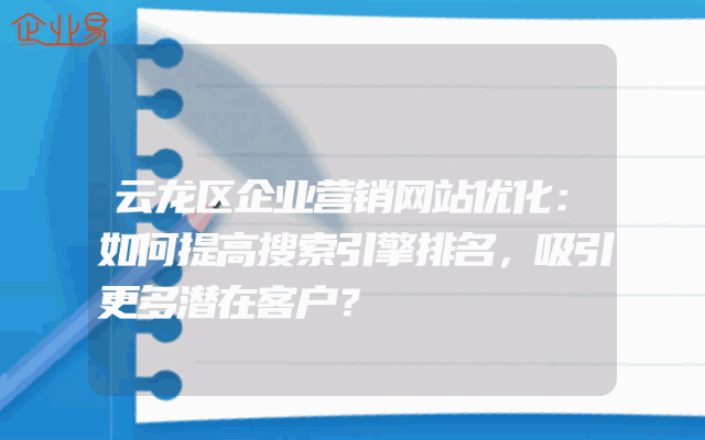 - 云龙区企业营销网站优化:如何提高搜索引擎排名,吸引更多潜在客户?