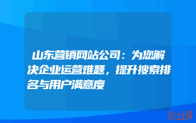 - 山东营销网站公司:为您解决企业运营难题,提升搜索排名与用户满意度