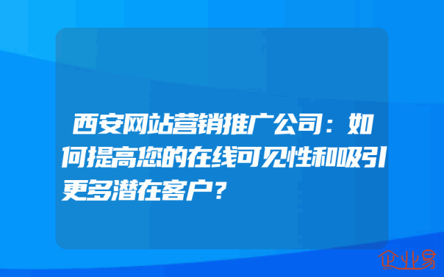 - 西安网站营销推广公司:如何提高您的在线可见性和吸引更多潜在客户?