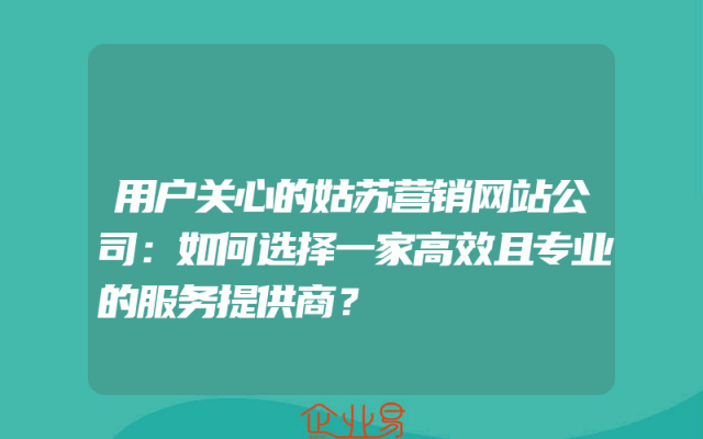 - 用户关心的姑苏营销网站公司:如何选择一家高效且专业的服务提供商?