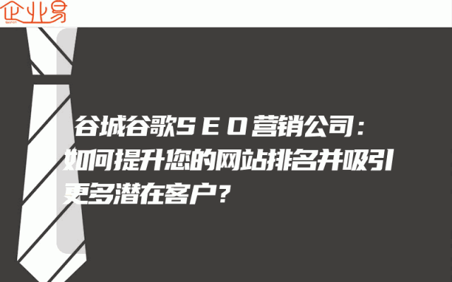 - 谷城谷歌SEO营销公司:如何提升您的网站排名并吸引更多潜在客户?