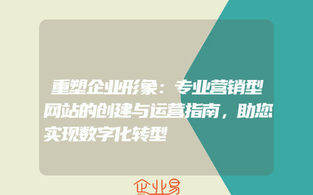 - 重塑企业形象:专业营销型网站的创建与运营指南,助您实现数字化转型