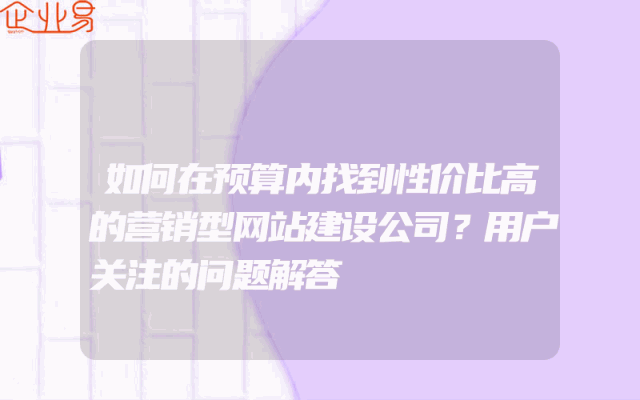 - 如何在预算内找到性价比高的营销型网站建设公司?用户关注的问题解答