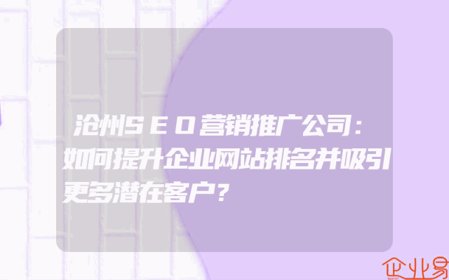 - 沧州SEO营销推广公司:如何提升企业网站排名并吸引更多潜在客户?