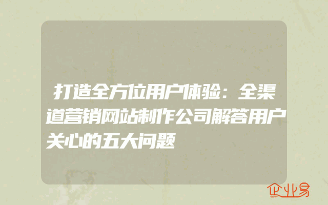 - 打造全方位用户体验:全渠道营销网站制作公司解答用户关心的五大问题