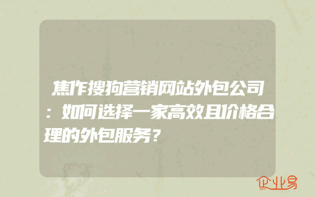 - 焦作搜狗营销网站外包公司:如何选择一家高效且价格合理的外包服务?