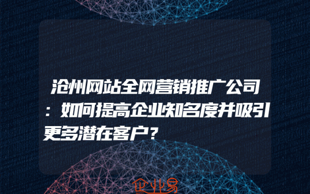 - 沧州网站全网营销推广公司:如何提高企业知名度并吸引更多潜在客户?