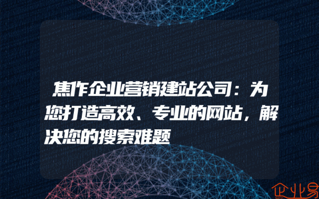 - 焦作企业营销建站公司:为您打造高效、专业的网站,解决您的搜索难题