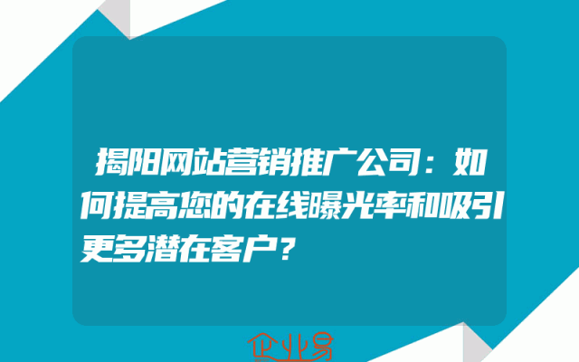 - 揭阳网站营销推广公司:如何提高您的在线曝光率和吸引更多潜在客户?
