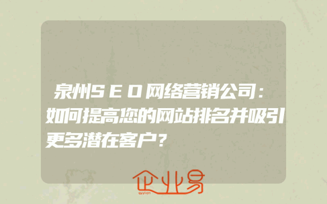 - 泉州SEO网络营销公司:如何提高您的网站排名并吸引更多潜在客户?