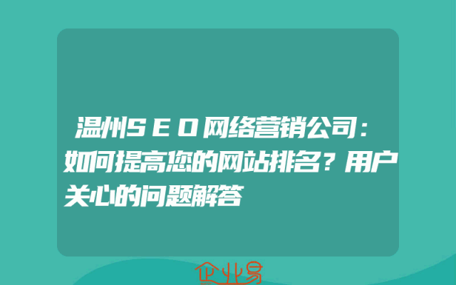 - 温州SEO网络营销公司:如何提高您的网站排名?用户关心的问题解答