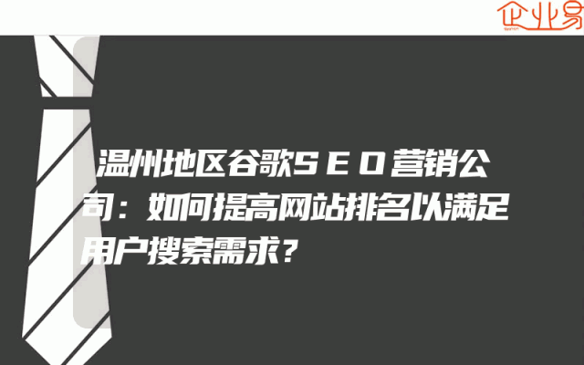 - 温州地区谷歌SEO营销公司:如何提高网站排名以满足用户搜索需求?