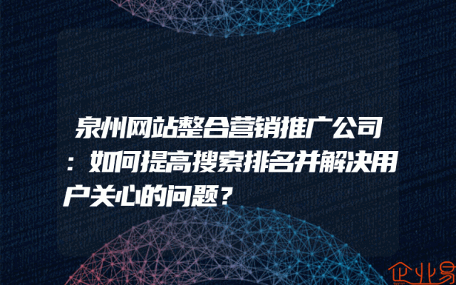 - 泉州网站整合营销推广公司:如何提高搜索排名并解决用户关心的问题?