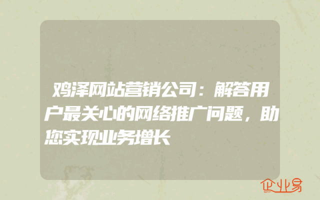 - 鸡泽网站营销公司:解答用户最关心的网络推广问题,助您实现业务增长
