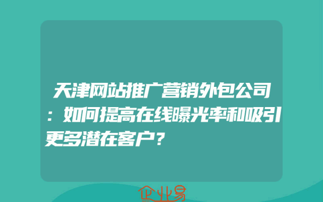 - 天津网站推广营销外包公司:如何提高在线曝光率和吸引更多潜在客户?