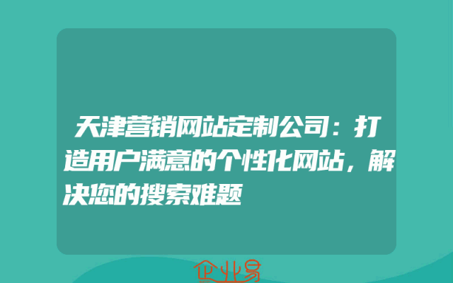 - 天津营销网站定制公司:打造用户满意的个性化网站,解决您的搜索难题