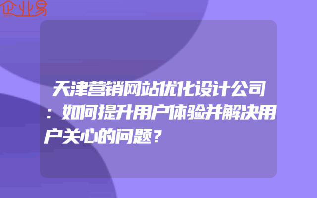 - 天津营销网站优化设计公司:如何提升用户体验并解决用户关心的问题?