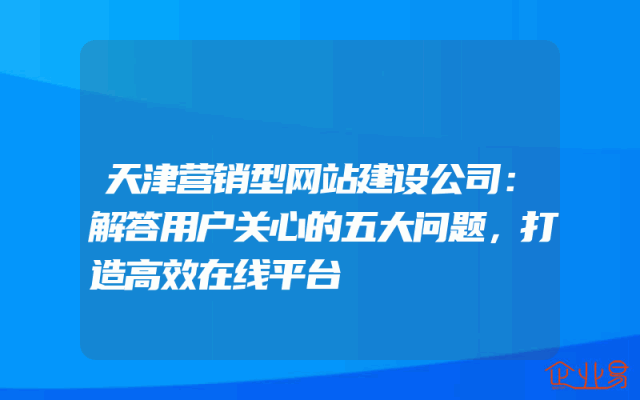 - 天津营销型网站建设公司:解答用户关心的五大问题,打造高效在线平台