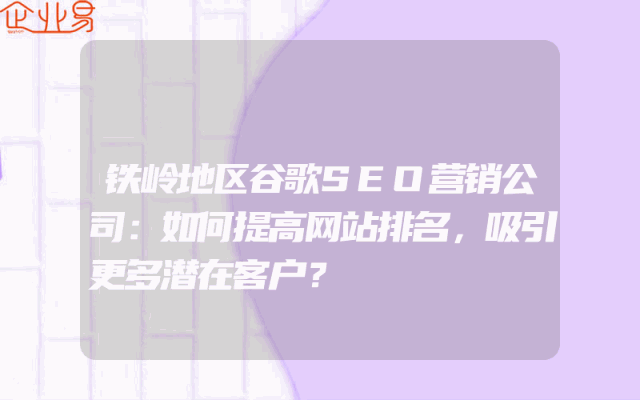 - 铁岭地区谷歌SEO营销公司:如何提高网站排名,吸引更多潜在客户?