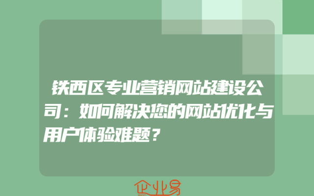 - 铁西区专业营销网站建设公司:如何解决您的网站优化与用户体验难题?