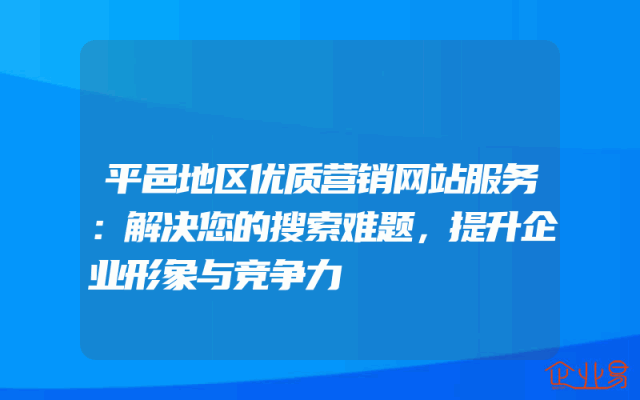 - 平邑地区优质营销网站服务:解决您的搜索难题,提升企业形象与竞争力