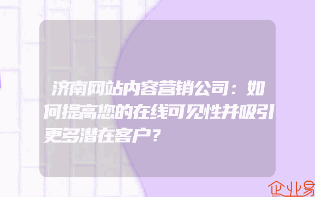 - 济南网站内容营销公司:如何提高您的在线可见性并吸引更多潜在客户?在当今的数字化时代,企业需要通过各种方式来扩大其在线影响力,以便吸引更多的潜在客户。其中,网站内容营销是实现这一目标的有效途径之一。本文将探讨如何通过专业的网站内容营销公司,