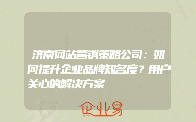 - 济南网站营销策略公司:如何提升企业品牌知名度?用户关心的解决方案