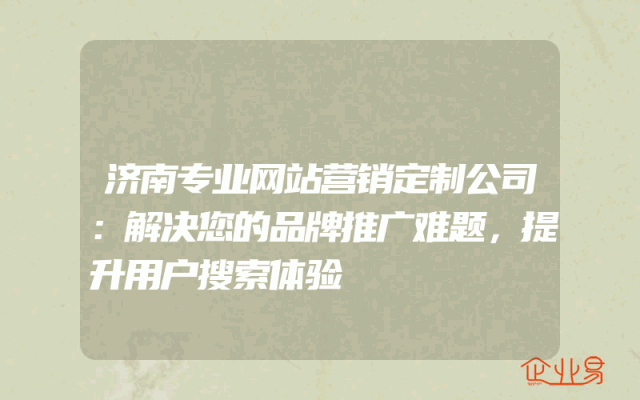 - 济南专业网站营销定制公司:解决您的品牌推广难题,提升用户搜索体验
