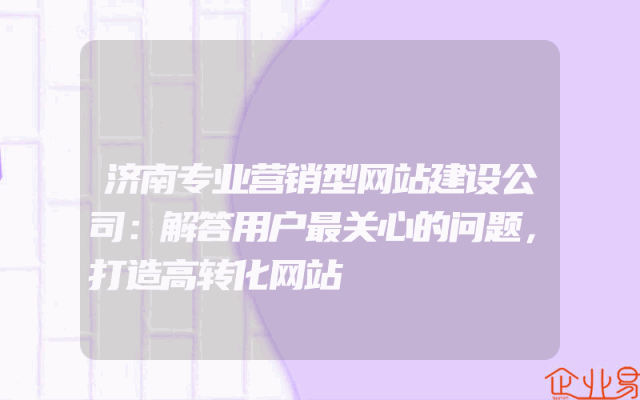 - 济南专业营销型网站建设公司:解答用户最关心的问题,打造高转化网站