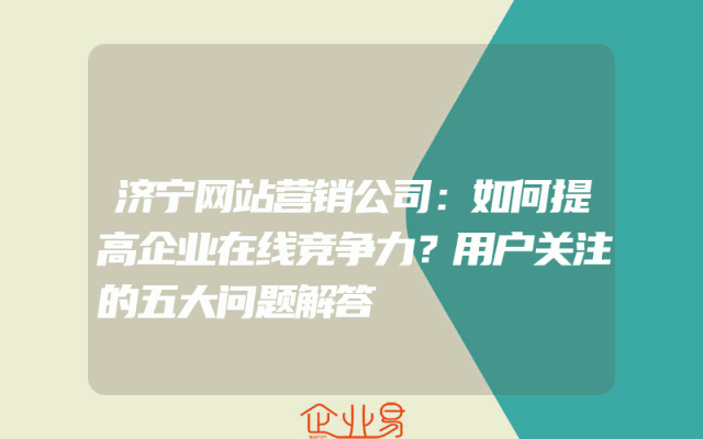 - 济宁网站营销公司:如何提高企业在线竞争力?用户关注的五大问题解答