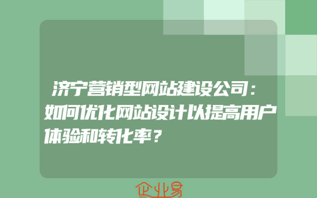 - 济宁营销型网站建设公司:如何优化网站设计以提高用户体验和转化率?