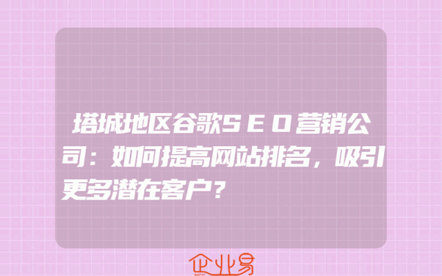 - 塔城地区谷歌SEO营销公司:如何提高网站排名,吸引更多潜在客户?